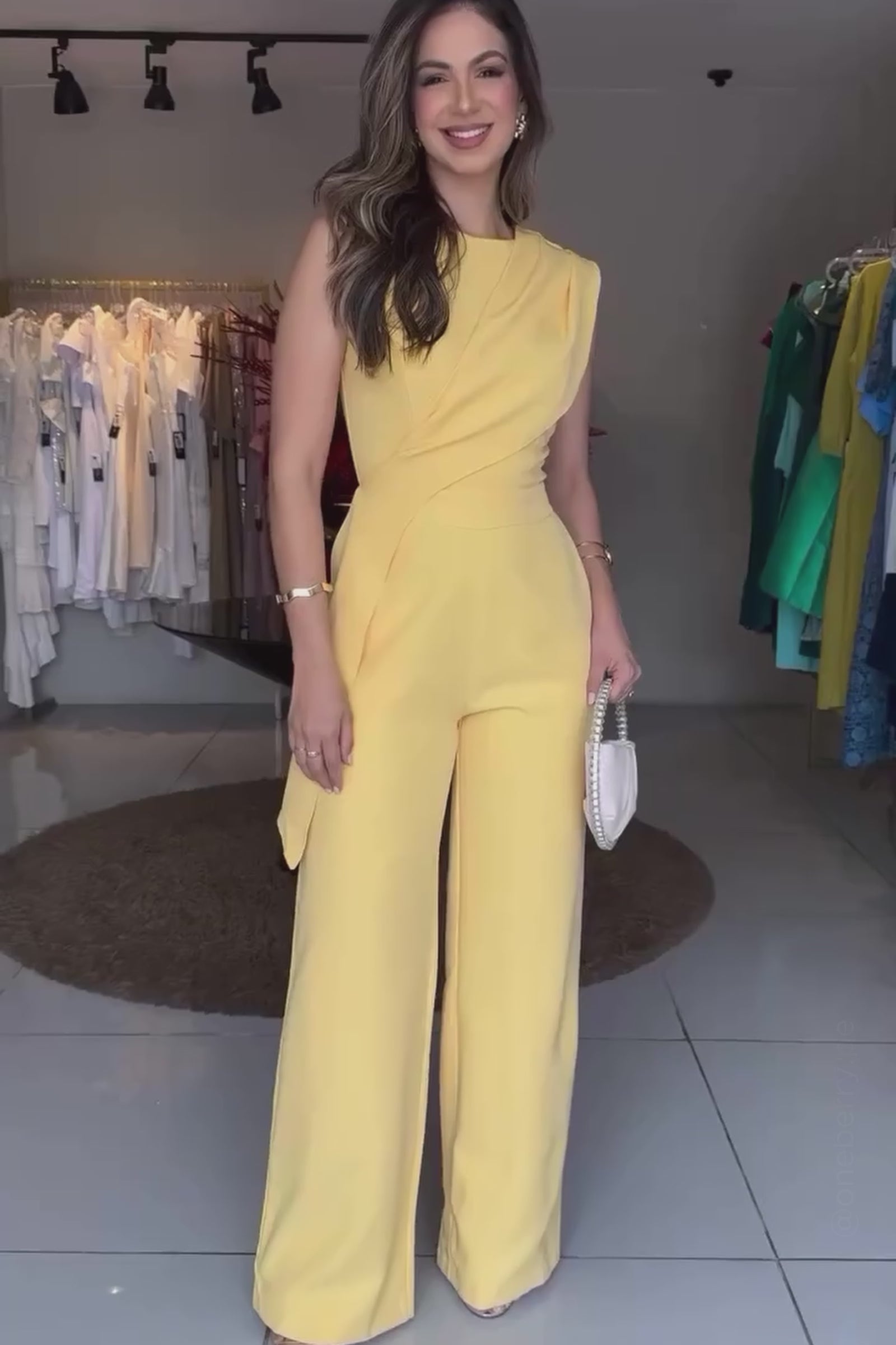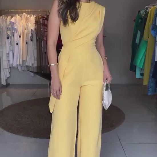 El enterizo Laura de diseño asimétrico en donde el hombro derecho un pliegue diagonal que cruza el pecho mientras que el hombro izquierdo está descubierto, lleva un corte entallado en la cintura para realzar tu figura con elegancia, en la parte inferior lleva un corte palazzo para aportar movimiento y comodidad. Cierre invisible y pinzas posteriores.